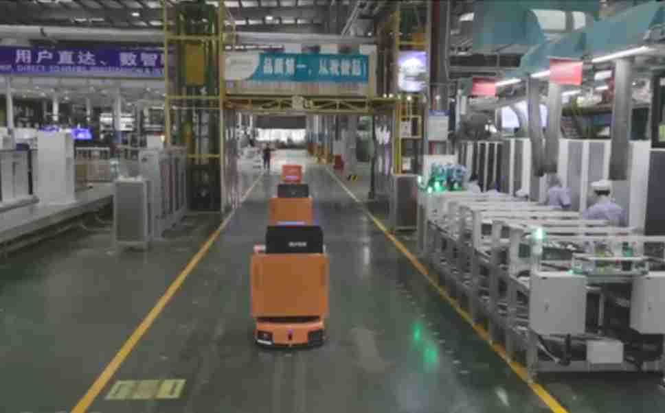 为车载冰箱物流配送打造的智能解决方案,,,包含产中物流通过潜伏举升AMR搬运至线边,,,产后成品物流智能仓储,,流程包含产中物流智能齐套入库,,,,线边安灯叫料AMR智能配送至线边,,成品入库、、、、出库,,通过无人堆高车机器人,,智能仓储管理替代人工作业管理,,实现更高存储、、、更高效率、、、更具柔性化的解决方案。。。